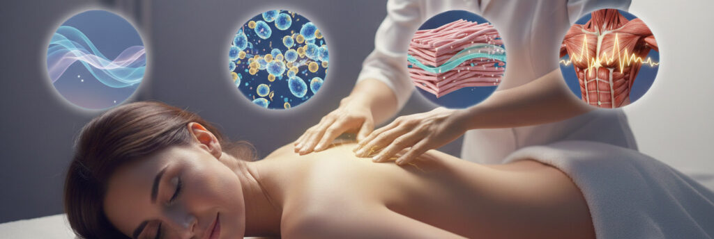 - 筋膜(Fascia): 癒着して硬くなった筋膜を特殊な周波数で解きほぐし(筋膜リリース)、身体の可動域を広げ、歪みを整えます。