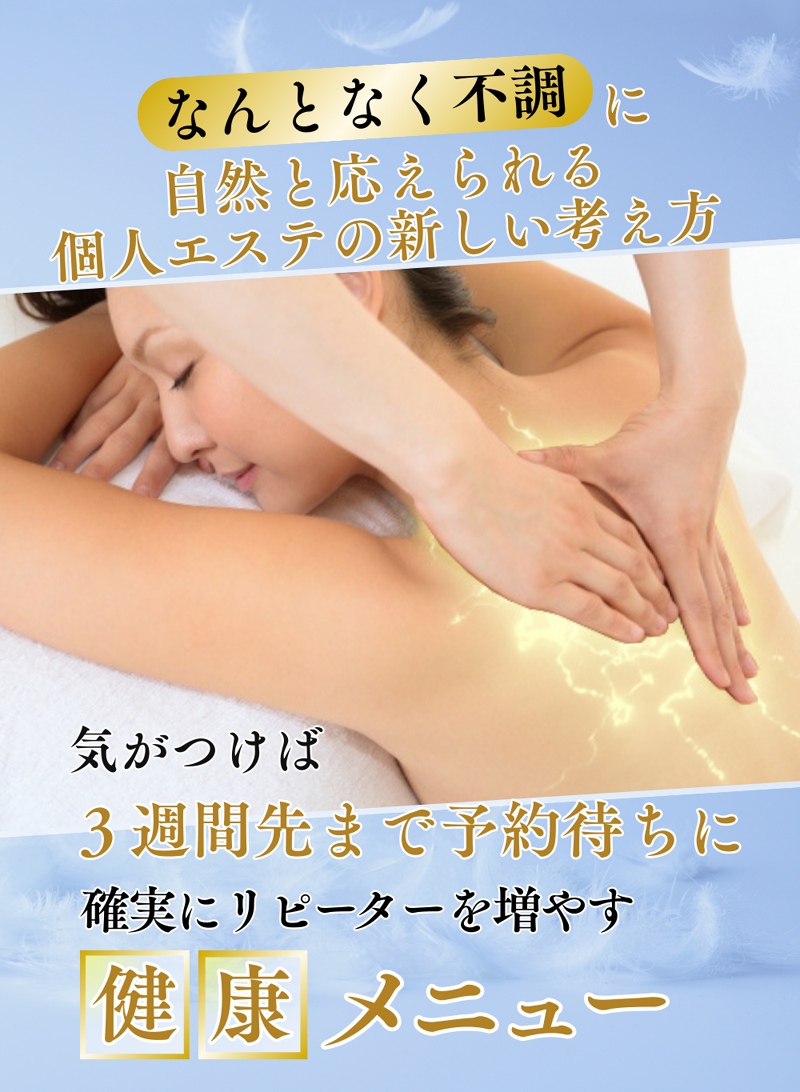 A.体調管理を目的とするお客様は、月1回〜月2回の定期通いを希望される方が多く、既存サロン様では3週間先まで予約が埋まる状況も。