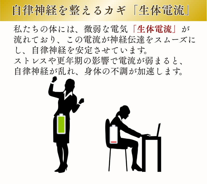 A.体に微弱電流を流し、ホルモンバランスや自律神経の乱れを整えることで、のぼせ・冷え・不眠・イライラなどの不調を和らげます。